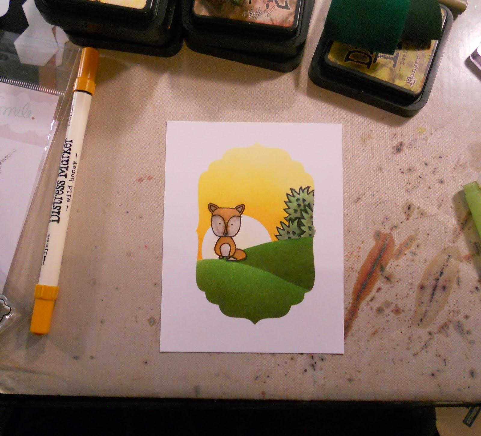 After I stamped the background I added a wash of tumbled glass and added some stormy sky around the beaver to have a shadow and some contrast. I seriously love how this turned out.