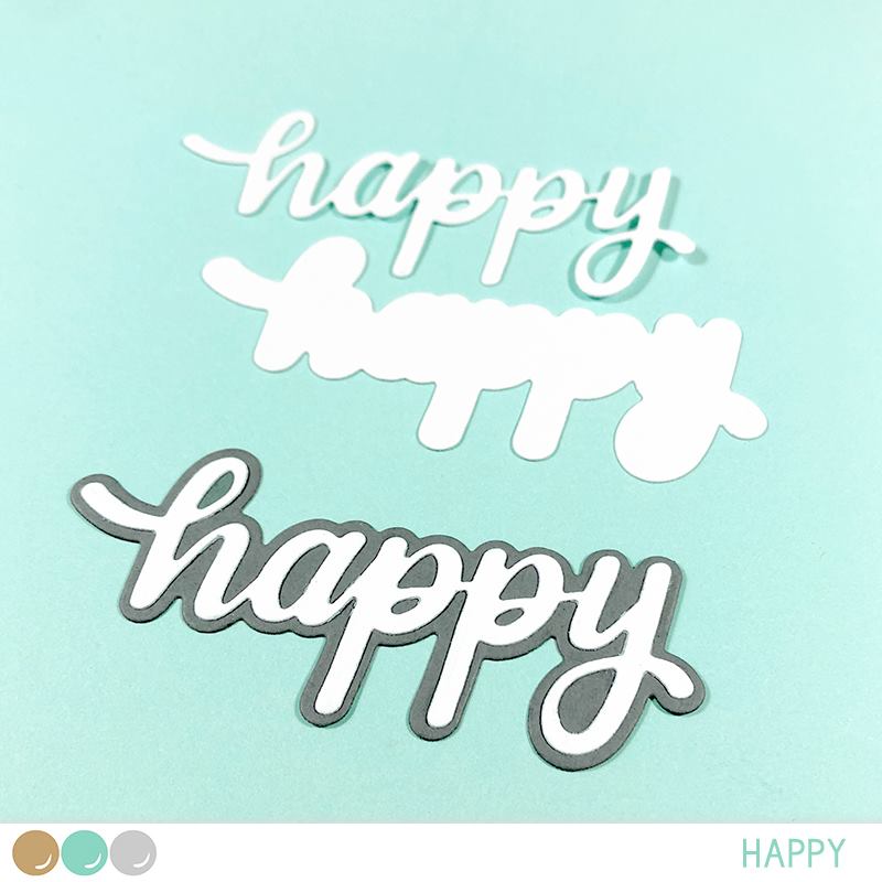 - For the sentiment I die cut several layers of the word happy and stack them up.