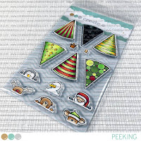 The trees and cute little reindeer are from the new Peeking stamp set! The background was created with that Twinkle stamp set and the sentiment is from Christmas Surprise!
